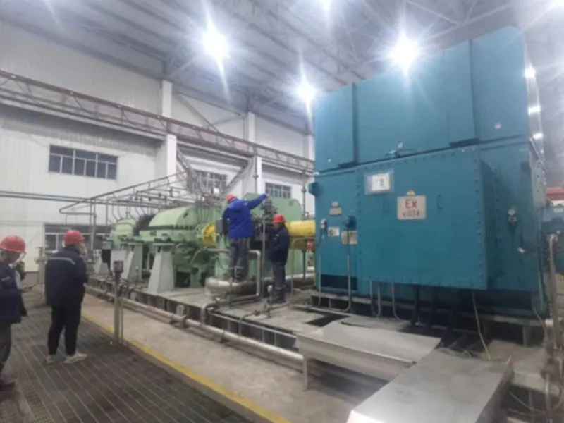 На начальном этапе проекта для запуска двигателей использовалось устройство плавного пуска с преобразователем частоты производства нашей компании (10 кВ, 16000 кВА). Впоследствии, в связи с особыми условиями на объекте, была проведена модернизация по схеме "один привод на два двигателя", что позволило одновременно осуществлять плавный пуск двигателей мощностью 19400 кВт и 14000 кВт.